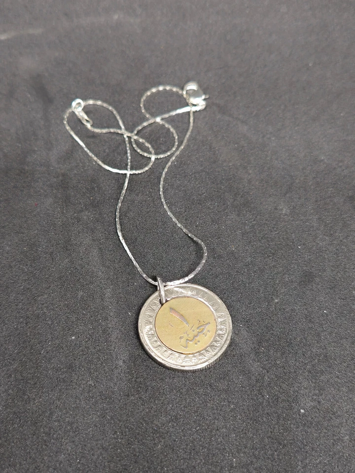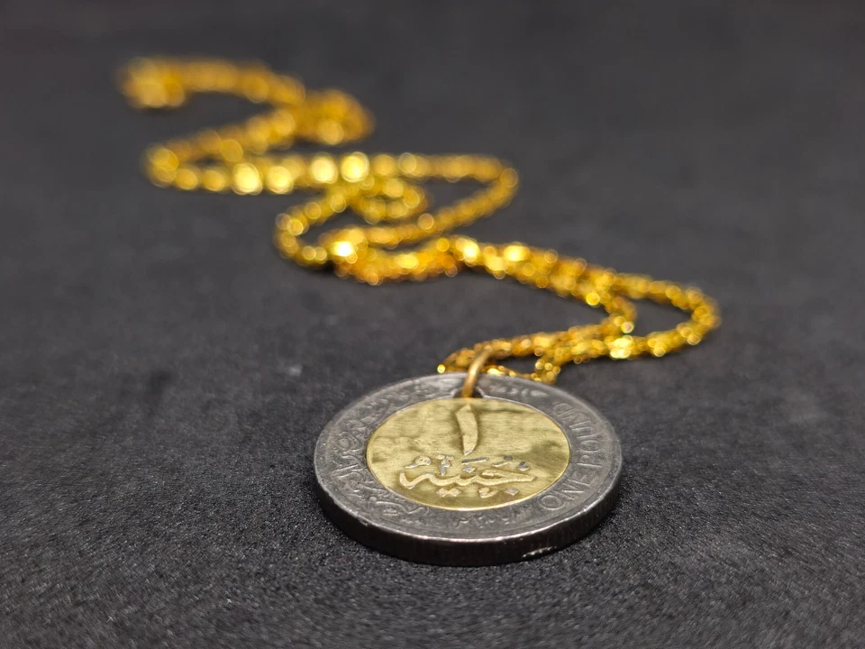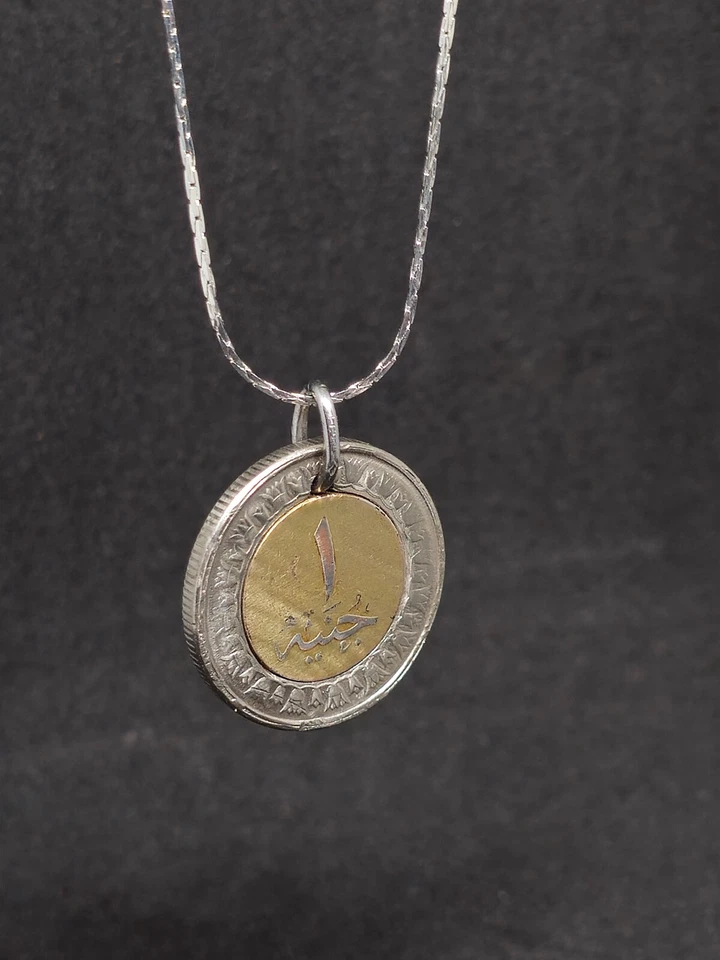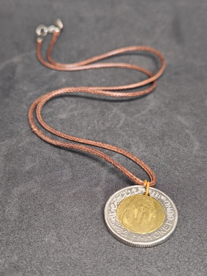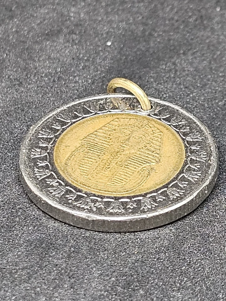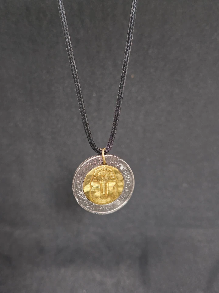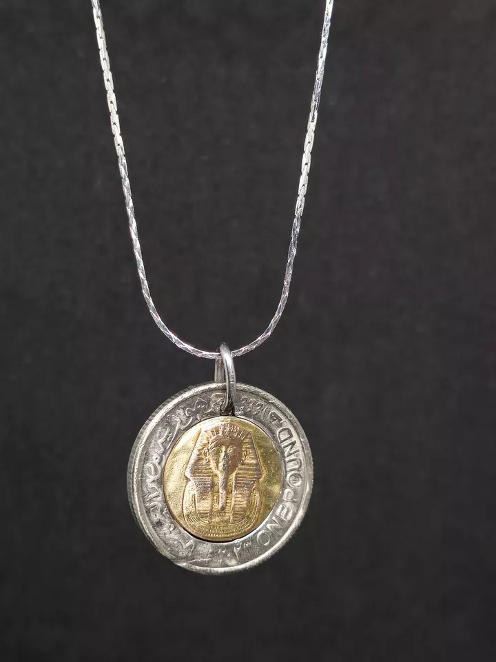 Egyptian coin necklace – Genuine EGY pound Tutankhamun Silver Gold Aura of Magic