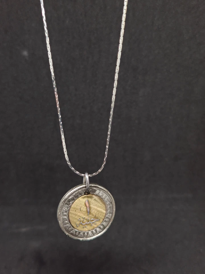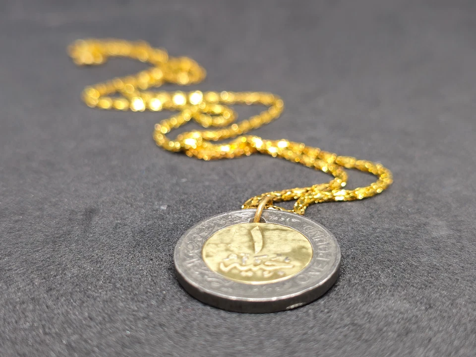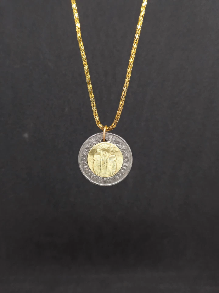HomeShopEgypto BazaarEgyptian coin necklace – Genuine EGY pound Tutankhamun Silver Gold Aura of Magic