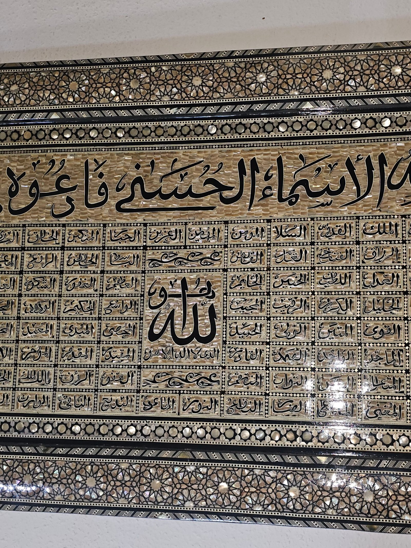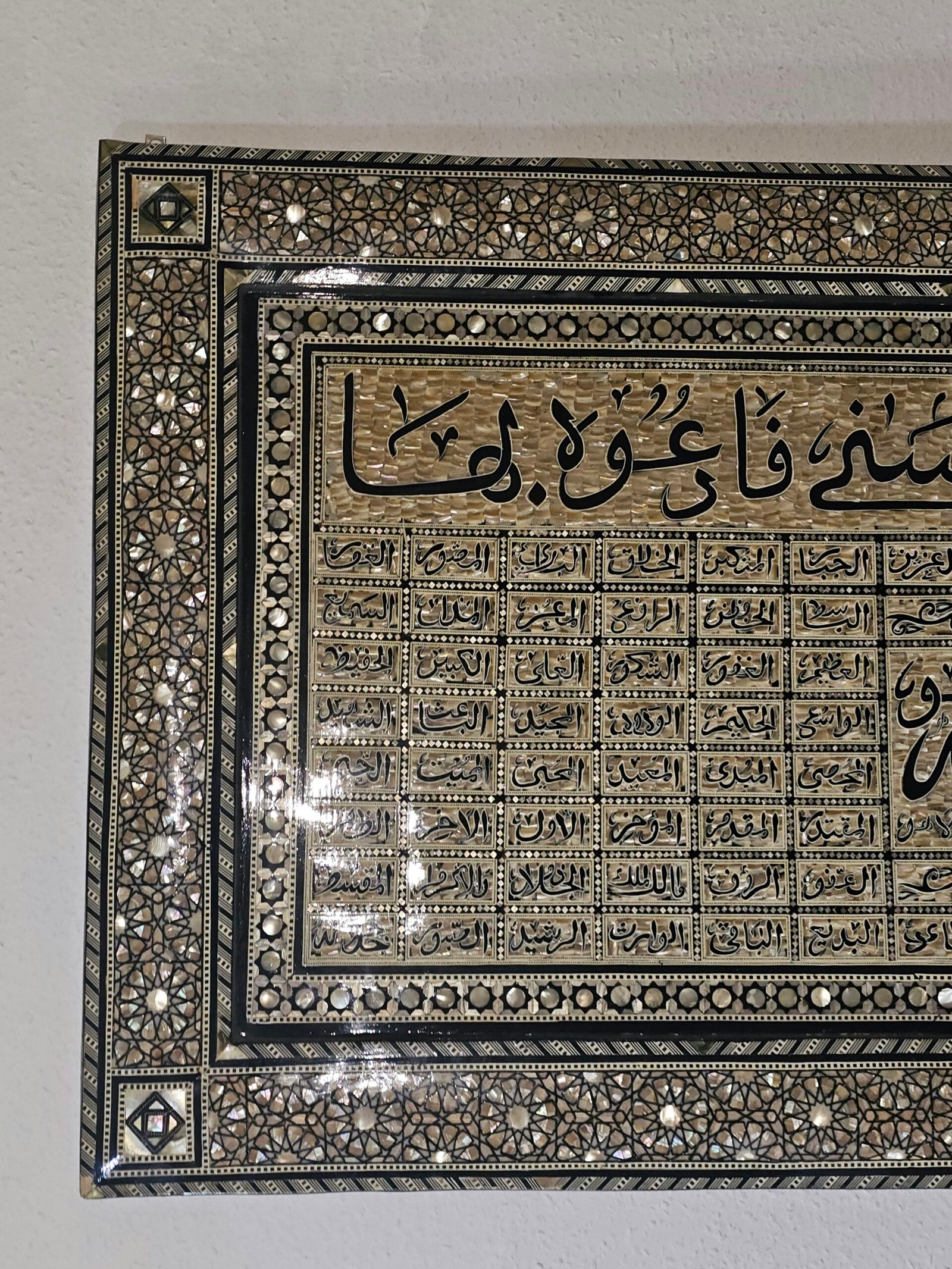 Islamic Wall Art – 99 Names of Allah – Mother of Pearl Mosaic Inlay Frame