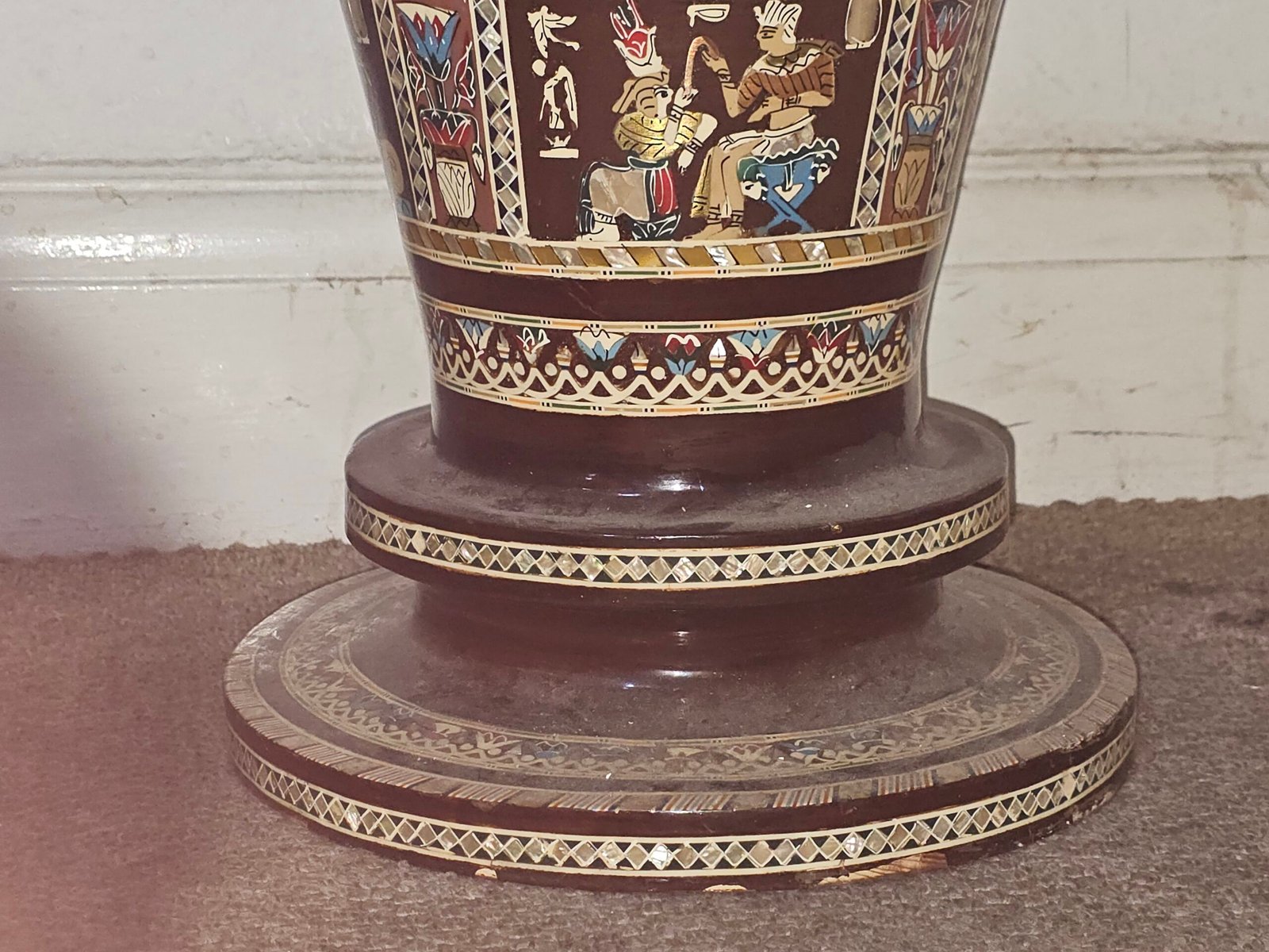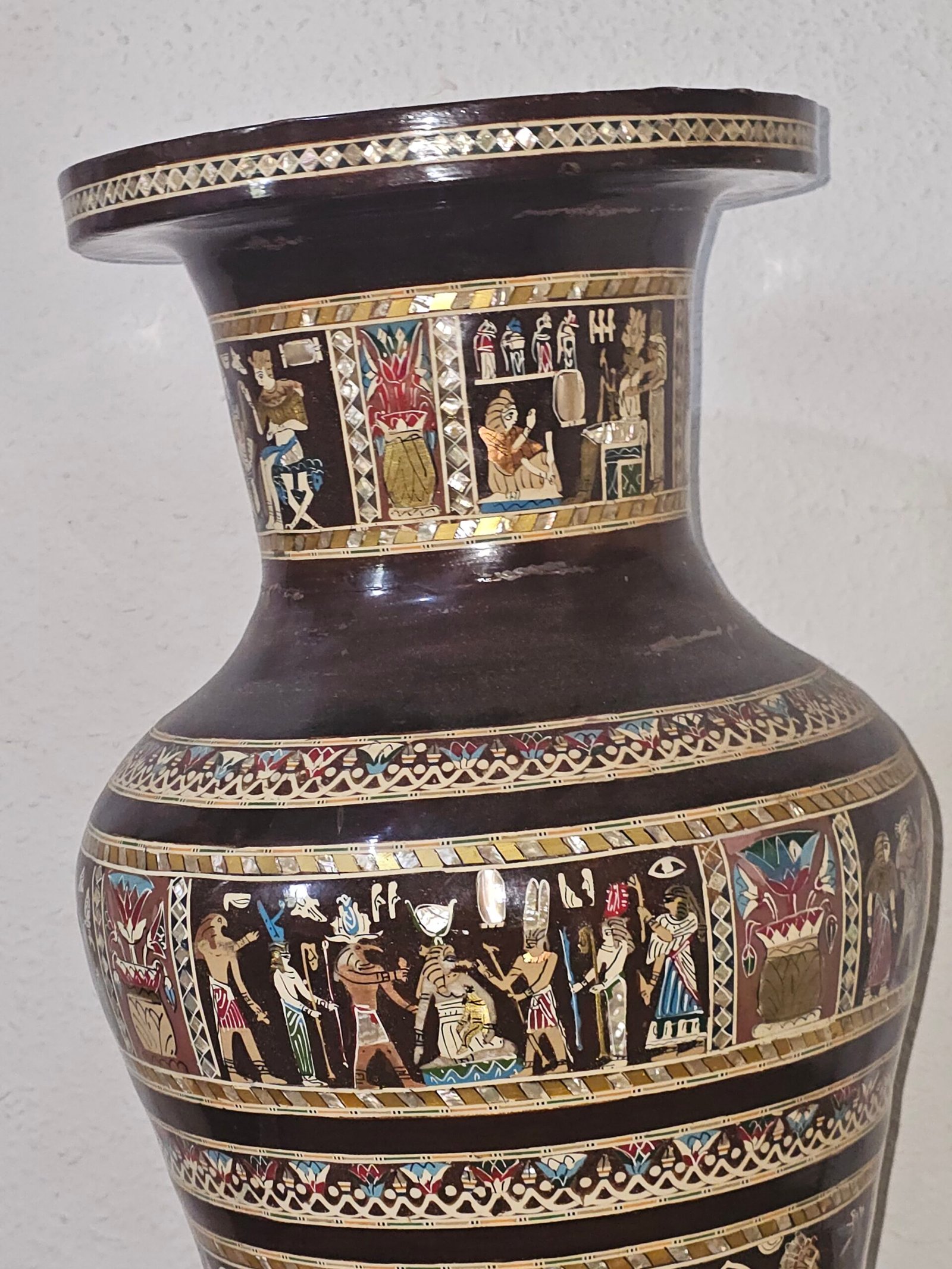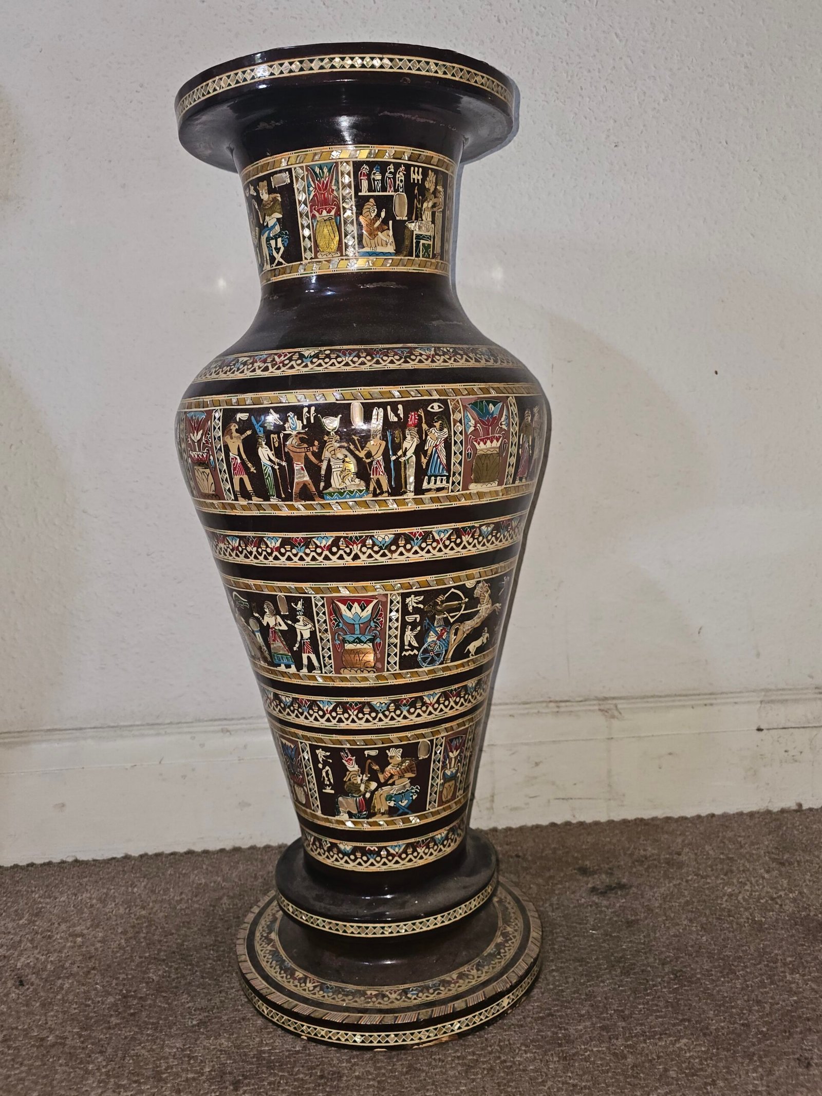 Exquisite Egyptian Mother of Pearl Inlaid Floor Vase with Pharaoh Scenes – Handmade