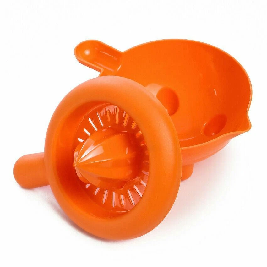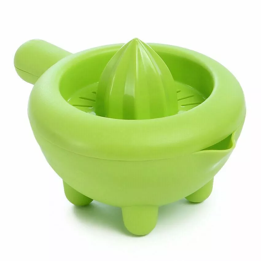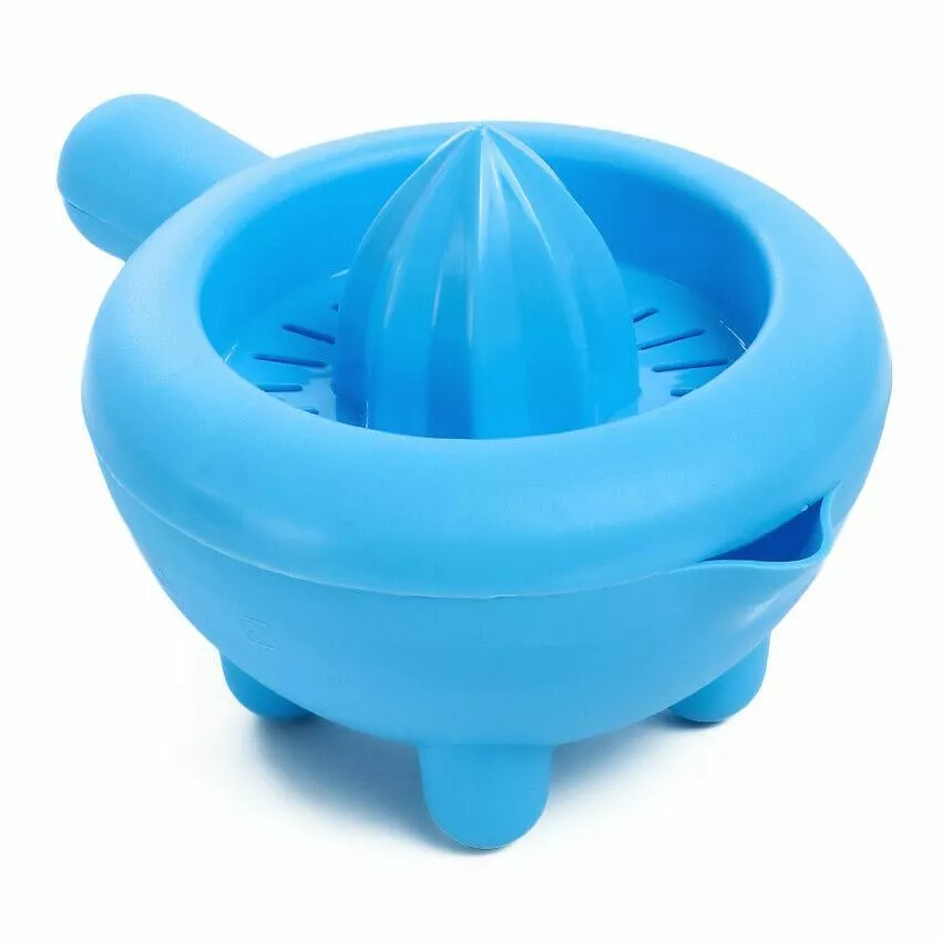 • This plastic squeezer is designed to extract every last drop from the fruit, while its built-in strainer catches every single pulp and pips
